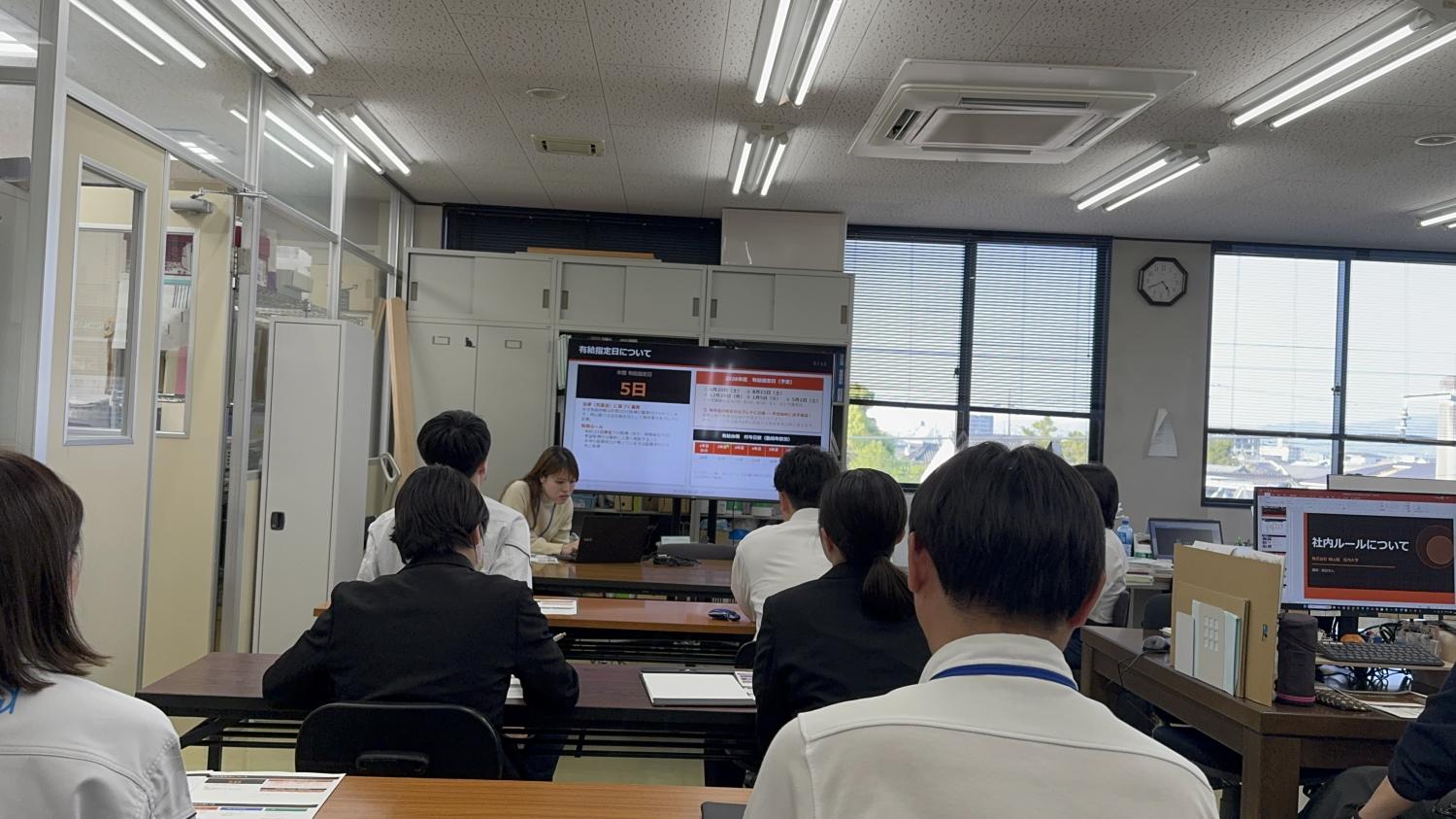 講義では、出退勤の打刻方法や有給休暇の取り扱い、社内電話の使い方に加え、各種申請の方法など、日々の業務に関わる基礎的なルールについて幅広く共有されました。